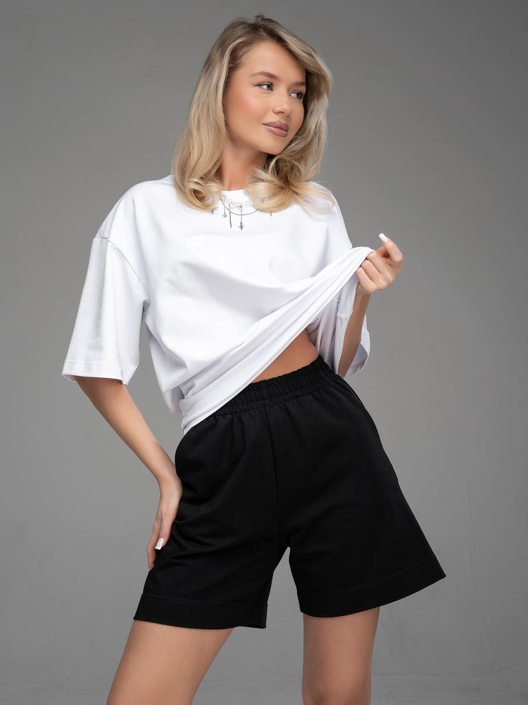Прежняя цена - 732 руб. Описание и параметры Укороченные шорты из футера черного цвета свободного силуэта с боковыми карманами. Высокий пояс с резинкой. По низу изделия- широкий подгиб . Изделие выпол... Показать описаниенено из трикотажа премиального качества - ПЕНЬЕ, с содержанием хлопка более 92% Артикул FP50005FUch Цвет Черный Материал Футер Состав 92%хлопок,8%полиэст. Размеры * 2XS Длина изделия: 39 Длина по шаговому шву: 14 Обхват по бёдрам: 89 Обхват талии: 60 * XS Длина изделия: 40 Длина по шаговому шву: 14 Обхват по бёдрам: 92 Обхват талии: 64 * S Длина изделия: 41 Длина по шаговому шву: 14 Обхват по бёдрам: 96 Обхват талии: 68 * M Длина изделия: 41 Длина по шаговому шву: 14 Обхват по бёдрам: 100 Обхват талии: 72 * L Длина изделия: 43 Длина по шаговому шву: 15 Обхват по бёдрам: 104 Обхват талии: 76 * XL Длина изделия: 43 Длина по шаговому шву: 15 Обхват по бёдрам: 108 Обхват талии: 80 * 2XL Длина изделия: 45 Длина по шаговому шву: 16 Обхват по бёдрам: 112 Обхват талии: 84 * 3XL Длина изделия: 46 Длина по шаговому шву: 16 Обхват по бёдрам: 116 Обхват талии: 88