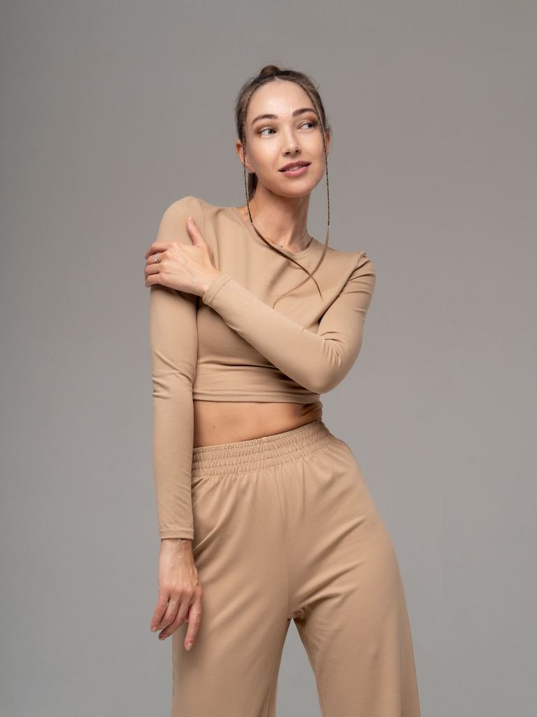 Прежняя цена - 1272 руб. Описание и параметры Оригинальный костюм-двойка из кулирки мокко цвета . Укороченный кроп с длинными прямыми рукавами и округлой горловиной. Расширенные брюки прямого силуэта ... Показать описаниес широким цельнокроенным поясом на резинке. Изделие выполнено из трикотажа премиального качества - ПЕНЬЕ, с содержанием хлопка более 95% Артикул FP30012KLmk Цвет Мокко Материал Кулирка с лайкрой Состав 95%хлопок, 5%эластан Размеры * 2XS Лонгслив Длина изделия: 41 Длина рукава: 59 Обхват груди: 80 Ширина изделия под проймой: 39 Брюки Длина изделия: 106 Длина по шаговому шву: 78 Обхват по бёдрам: 88 Обхват талии: 60 Ширина брюк внизу: 25 * XS Лонгслив Длина изделия: 42 Длина рукава: 59 Обхват груди: 84 Ширина изделия под проймой: 41 Брюки Длина изделия: 107 Длина по шаговому шву: 83 Обхват по бёдрам: 92 Обхват талии: 64 Ширина брюк внизу: 35 * S Лонгслив Длина изделия: 42 Длина рукава: 59 Обхват груди: 88 Ширина изделия под проймой: 43 Брюки Длина изделия: 107 Длина по шаговому шву: 83 Обхват по бёдрам: 96 Обхват талии: 68 Ширина брюк внизу: 36 * M Лонгслив Длина изделия: 43 Длина рукава: 60 Обхват груди: 92 Ширина изделия под проймой: 45 Брюки Длина изделия: 107 Длина по шаговому шву: 83 Обхват по бёдрам: 100 Обхват талии: 72 Ширина брюк внизу: 37