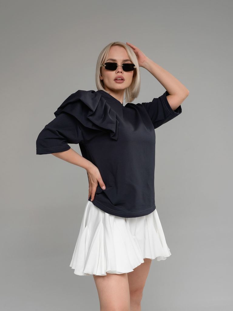 Прежняя цена - 1172 руб. Описание и параметры Футболка женская из футера антрацитового цвета в стиле Оверсайз , рукавами длиной до локтя и объемным воланом на плече . Высокое содержание хлопка в соста... Показать описаниеве 92 % позволит почувствовать максимальный комфорт и уверенность в себе, а добавление эластана 8 % придаcт этому изделию дополнительную прочность и износостойкость. Оверсайз стиль, рукава длиной до локтя и объемный волан - сделают элегантным ваш образ. Вы будете выглядеть превосходно в любой ситуации - будь это повседневный или наряд или для праздничных и вечерних выходов. Свободная, удлиненная футболка идеальный вариант для летнего периода. Благодаря своей универсальности данную модель можно носить как футболку с рюшами или женскую блузку. Изделие выполнено из трикотажа премиального качества - ПЕНЬЕ, с содержанием хлопка более 92% Артикул FP10037FUan Цвет Антрацитовый Материал Футер Состав 92%хлопок,8%полиэст. Размеры * S Длина изделия: 69 Длина рукава: 26 Обхват груди: 88