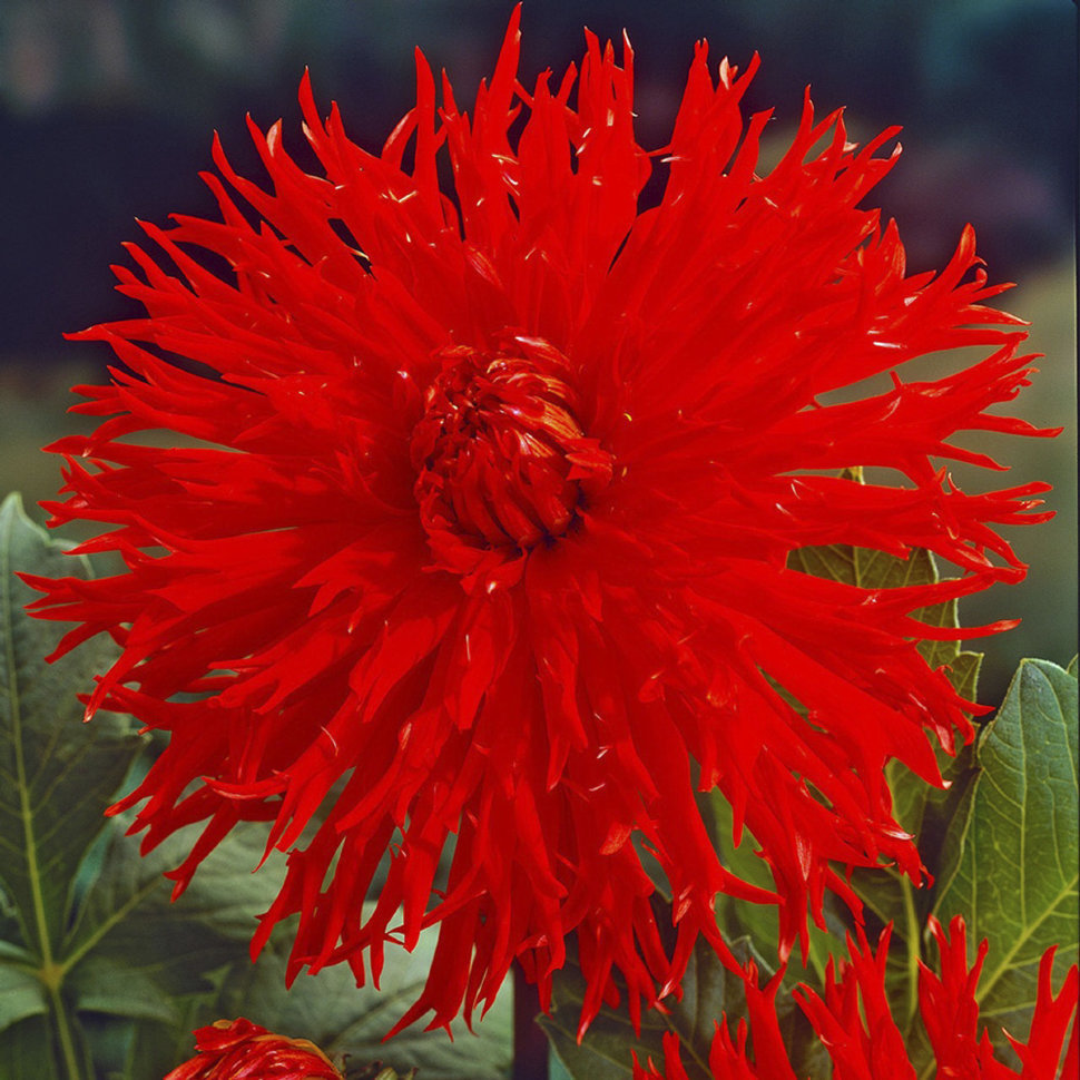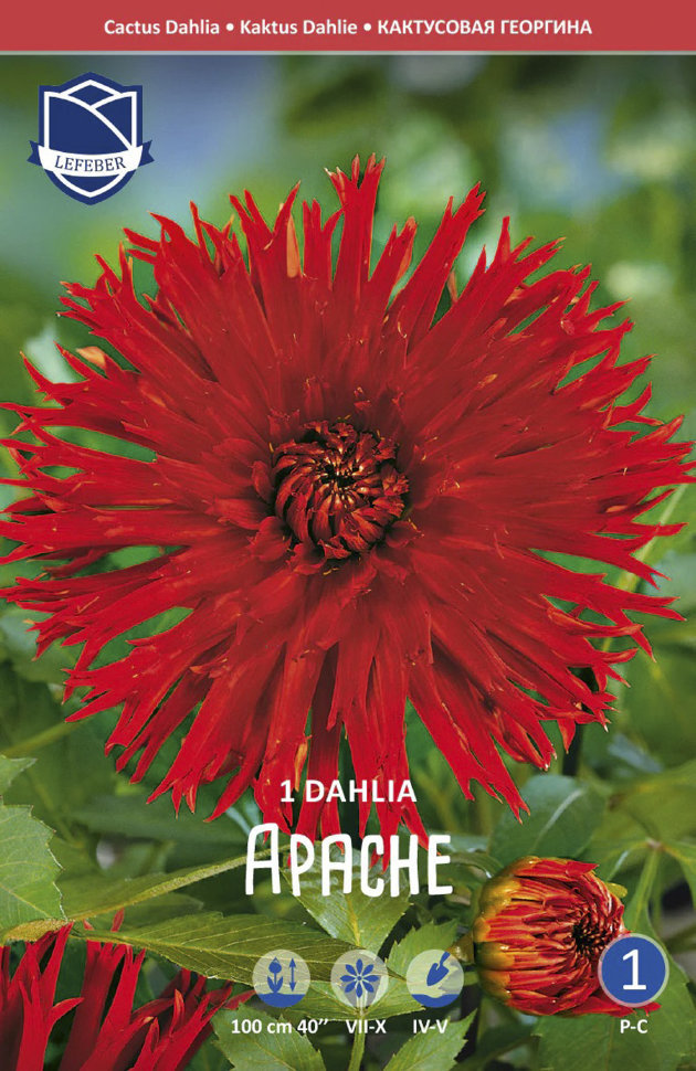 Пламенные, темно-красные цветки, напоминающие пышные головные уборы индейцев. Лепестки длинные, скрученные, разрезанные по краю. * Высота: 90-100 см * Диаметр цветка: 15-18 см Агротехника: Местоположе... Показать описаниение: солнечные, защищенные от холодных и сильных ветров места с хорошей циркуляцией воздуха. Нельзя высаживать их на низких и заболоченных участках. Расстояние при посадке зависит от высоты и формы куста того или иного сорта. Участок, выбранный для георгин, должен освещаться днем по крайней мере шесть часов. Почва: богатый перегноем жирный садовый суглинок, рН 6,5-6,7. Хороша для георгинов и удобренная песчаная почва. Участок, предназначенный под георгины, с осени вскапывают, а весной перекапывают. Посадочный материал обычно высаживают в грунт, когда минует угроза возвратных заморозков. В ямы размером 30 х 30 х 30 см, насыпают заранее подготовленный субстрат и комплексное минеральное удобрение. В зависимости от высоты, расстояние между растениями в ряду — 60–90 см. При правильной посадке корневая шейка должна быть на 2-3 см ниже уровня почвы. После посадки растения обильно поливают. Уход за георгинами несложный — обильный полив, мульчирование опилками слоем 6–9 см, подкормки и удаление лишних побегов. Для получения более крупных соцветий обычно удаляют пазушные побеги и выщипывают боковые бутоны. В октябре клубни выкапывают, предварительно обрезав стебли выше корневой шейки на 10–15 см. Клубни очищают от земли и подсушивают. Стебли укорачивают до 3–5 см. Посадочный материал закладывают в ящик с торфом и хранят при температуре от +2 до +6°С.