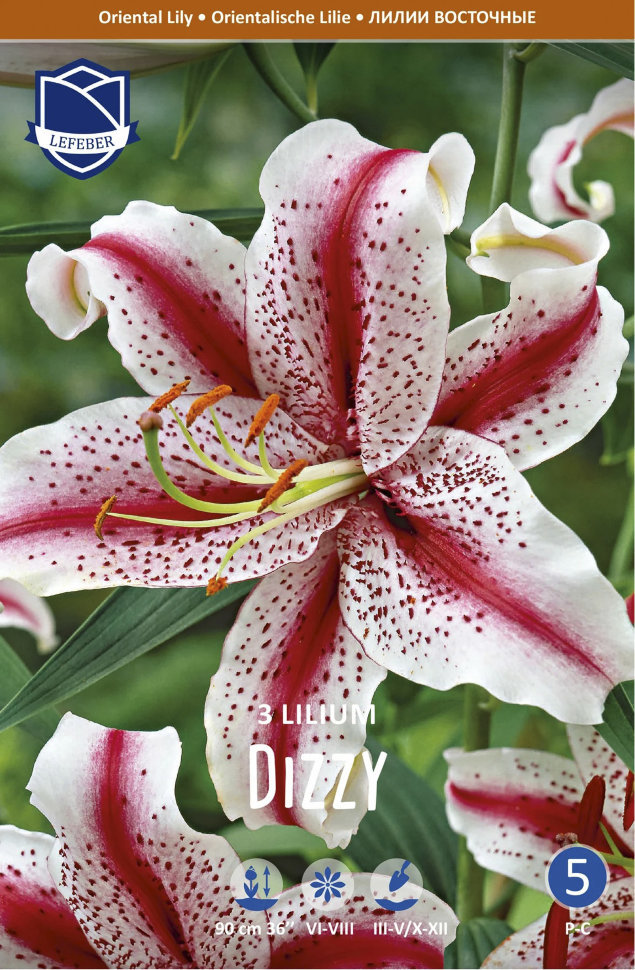 Цветки крупные, с выраженным приятным ароматом, белые с частым ярко-розовым крапом и розовой полосой по центру лепестков, края волнистые. Цветение длительное, цветы долго стоят в срезке. Высота 90-100... Показать описание см. Агротехника: лилии могут выращиваться на одном месте (без пересадки) в течение 3-5 лет. Под посадку лилий выбирают места, хорошо защищенные от сильных ветров (однако хорошо проветриваемые), с солнечным местоположением или частичной полутенью. Почвы должны быть хорошо дренированные (лилии не выносят застоя воды в корнях), рыхлыми и плодородными. Перед посадкой почву обрабатывают на глубину 35-40 см, добавляют удобрения. Глубина посадки луковиц: * для низкорослых сортов (крупные луковицы) -10-12 см, с расстоянием между луковицами 15-20 см; * для среднерослых сортов (крупные луковицы) - 12-15 см, с расстоянием между луковицами 20-25 см; * для высокорослых сортов (крупные луковицы) - 15-20 см, с расстоянием между луковицами 25-30 см. Делают лунки, на дно которых насыпают песок, распределяют луковицы, присыпают корни небольшим количеством песка, и засыпают их почвой. Песок помогает уберечь луковицу от излишней влаги и инфекций, находящихся в земле. Участок с высаженными луковицами поливают. Ежегодно осенью на участки с лилиями рекомендуется вносить хорошо перепревший компост. В районах с суровым климатом, посадки лилий укрывают лапником слоем 15-20 см. Весной, когда минует угроза заморозков, укрытие снимают. Последующий уход заключается в периодическом поливе (раз в 7-10 дней), подкормках и рыхлении почвы. В конце сезона цветоносы обрезают на уровне земли.