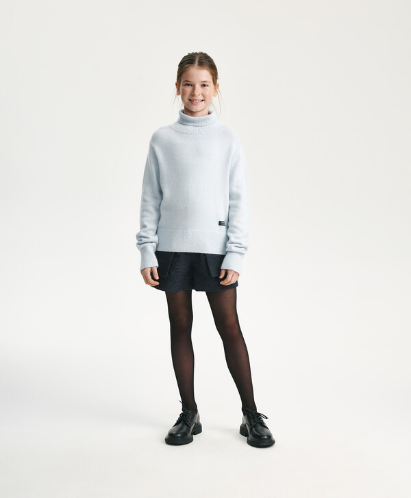 Синяя водолазка создана для лаконичных интеллигентных школьных образов девочки. Акцентная тесьма-бант из основного материала на высоком воротнике добавляет водолазке шарм, изысканность, деликатность. ... Показать описаниеБант можно завязать сбоку, посередине, а также собрать мягкие трикотажные ленты любым иным способом. В любом случае, водолазка будет элегантна, комфортна, пластична, приятна тактильно. Школьная водолазка отлично сочетается с сарафанами, юбками и брюками любой формы, легко вписываясь как в повседневные, так и в нарядные комплекты. 95% хлопок,5% эластан