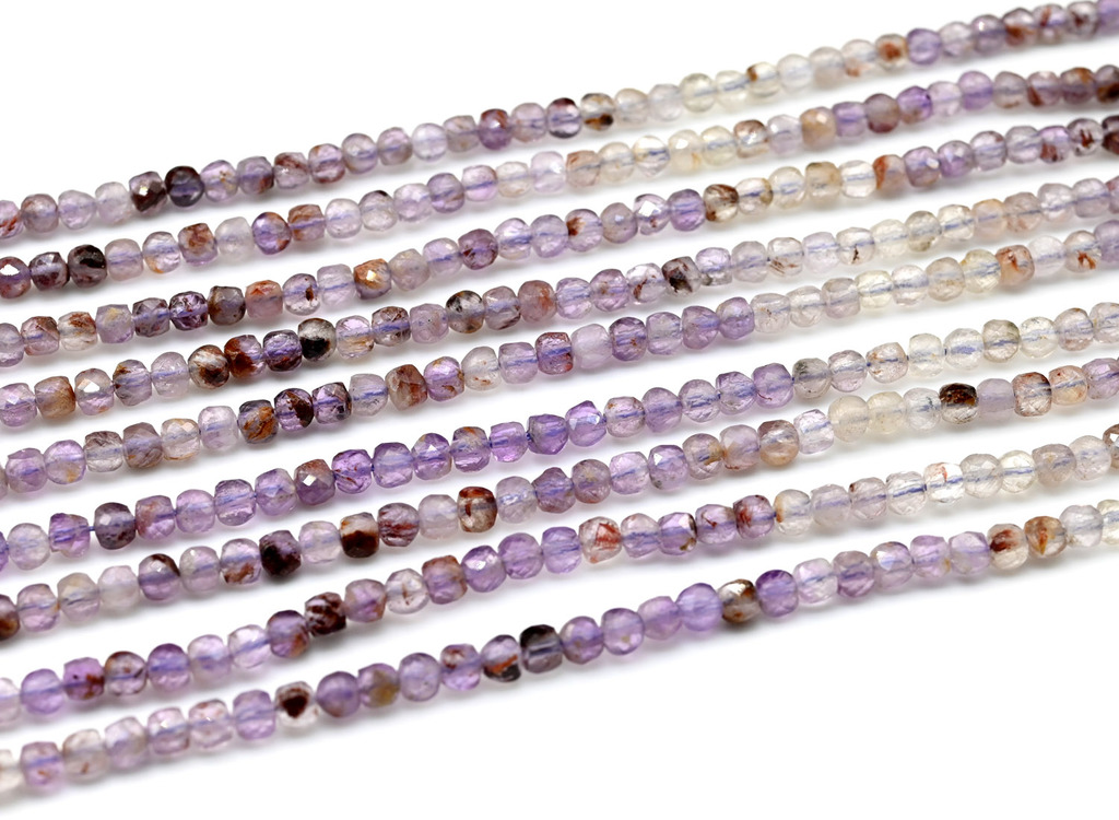 Бусины аметист какоксенит кубик огранка 4мм, 39см, 100 бусин