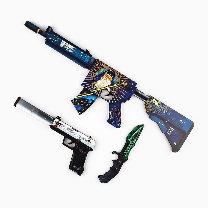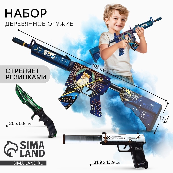 Игровой набор для приключений, где каждая деталь становится частью новой истории. Детский набор деревянного оружия «Император» — комплект игрушек для сюжетных игр и активных сценариев. В одном наборе собраны несколько игровых предметов, поэтому ребёнок может менять роли: сегодня он защитник крепости, завтра исследователь или герой приключенческой истории. * Набор для ролевых игр: игрушечный автомат, пистолет и охотничий нож формируют полноценный игровой комплект для детских приключений и командных миссий. * Деревянная основа: игрушки изготовлены из плотного древесного материала. Поверхность приятна на ощупь и хорошо подходит для активной игры. * Сюжетные сценарии: дети придумывают собственные игровые истории — от «спецопераций» до походов и поисков сокровищ. * Подходит для тематических подарков: такой набор часто выбирают как подарок мальчику на праздник, связанный с военной тематикой или Днём защитника Отечества. Игра и развитие: набор игрушечного оружия из дерева становится реквизитом для воображения. Во время игры ребёнок взаимодействует с друзьями, распределяет роли, придумывает задания и сюжет. Активные сценарии помогают развивать координацию, фантазию и уверенность в действиях. Детский игровой набор «Император» легко превращает обычный день в маленькое приключение.