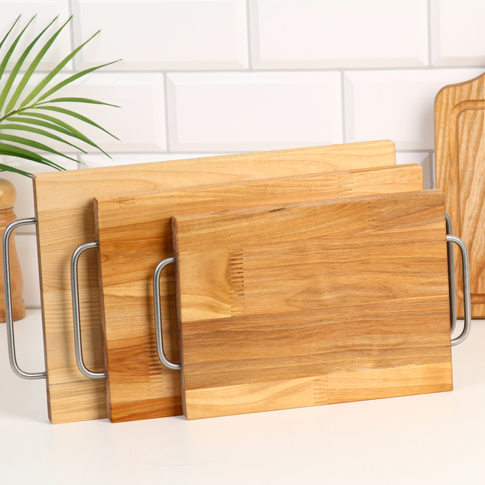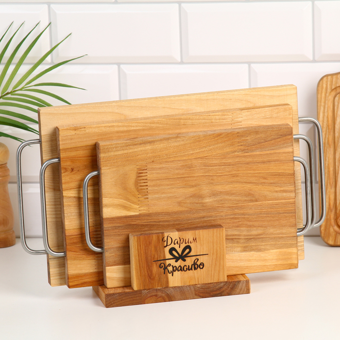 Набор досок разделочных Дарим Красиво «Прямоугольник», 3 шт., металлическая ручка, подставка, 39?23?2 см, 33?20?1.8 см, 28?18 см, дерево