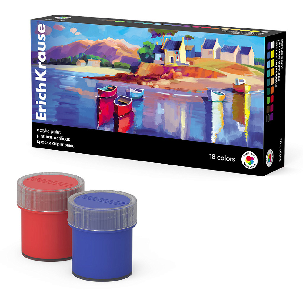 Краски акриловые ErichKrause Art Spirit 18 цветов по 20 мл (в коробке 18 шт)