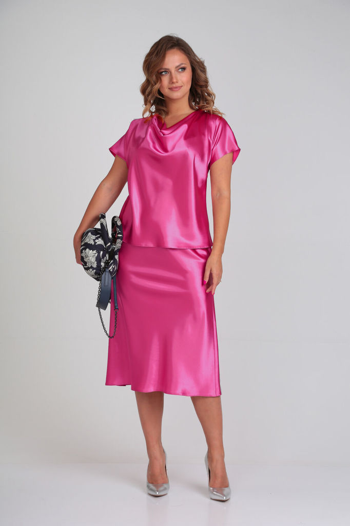 Состав: ПЭ-98%; Спандекс-2%; Костюм из премиального атласа от бренда Anastasia. Этот комплект создан для женщин, которые стремятся выглядеть элегантно и нежно в любой ситуации. Костюм идеально сидит на фигуре благодаря своему прекрасному крою. Юбка скроена по косой, что придает ей особый шарм и изысканность. Она смотрится очень женственно и делает силуэт стройным и изящным. Одной из главных особенностей этого костюма является его универсальность. Юбка на резинке, что позволяет комбинировать ее с различными верхами. Вы можете носить ее с рубашкой для создания формального и элегантного образа, с футболкой для более повседневного стиля или со свитером для создания уютного и стильного образа в холодное время года. Костюм можно комбинировать разделяя топ и юбка, что позволяет вам создавать различные комбинации и экспериментировать с вашим стилем. Вы сами выбираете, какой верх сочетать с этой изысканной юбкой, в зависимости от вашего настроения и события. Этот костюм подойдет для любых случаев, будь то официальное мероприятие, светский прием или романтический ужин. Он добавит вам уверенности и подчеркнет вашу индивидуальность. Если вы ищете идеальный вечерний наряд, который будет подчеркивать вашу нежность и элегантность, то этот женский вечерний костюм из плотного шелкового атласа - идеальный выбор для вас. Почувствуйте себя особенной и привлекательной в этом потрясающем костюме. Добавьте нас в избранное (для этого нужно "кликнуть" на название бренда, а после перехода на главную страницу нажать на "сердечко") и следите за нашими новинками. Будем рады видеть вас в числе наших покупателей! . Длина (по спинке):-56 см. Длина юбки: -80 см.