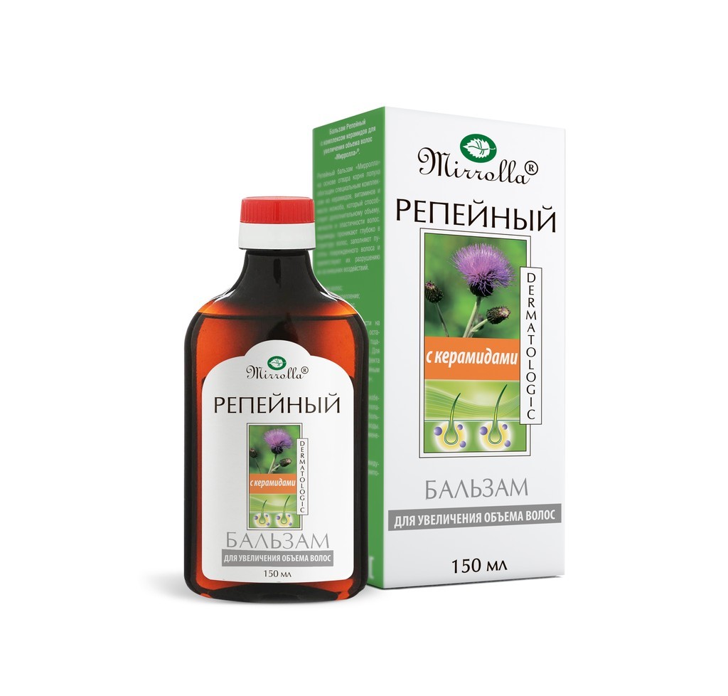 Объем волос. Укрепление волосяного стержня. Усиление роста волос. Репейный бальзам с комплексом керамидов серии «Мирролла» создан на основе отвара корня лопуха. Бальзам обогащен комплексом керамидов, сбалансированным комплексом витаминов, маслом жожоба. Регулярное применение бальзама поможет укрепить волосы по всей длине, избавиться от ломкости, хрупкости волосяного стебля, а также придать волосам объем. Керамиды — заполняют мелкие трещины и делают волосы сильными и прочными, а живительная сила репейника поддерживает здоровье кожи головы. СОСТАВ: Arctium Lappa Root Extract, Aqua, Cetearyl Alcohol (And) Dipalmitoylethyl Hydroxyethylmonium Methosulfate (And) Ceteareth-20, Cetrimonium Chloride, Polyquaternium-7, Amodimethicone, Cyclomethicone, Polysorbate-20, Glycosyl Ceramide, EDTA, Citric Acid, Phenoxyethanol, Ethylhexylglycerin, Parfum, CI 75810. СПОСОБ ПРИМЕНЕНИЯ: нанесите бальзам на чистые, влажные волосы. Легкими движениями распределите бальзам на волосы, оставьте на 2-3 минуты, затем тщательно смойте теплой водой. Для достижения лучшего эффекта используйте репейный шампунь и маску серии «Мирролла».