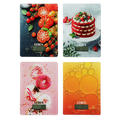 LEBEN Весы кухонные электронные, стекло с дизайном, прямоуг. макс.нагр. 5кг (точн.измер. 1гр)