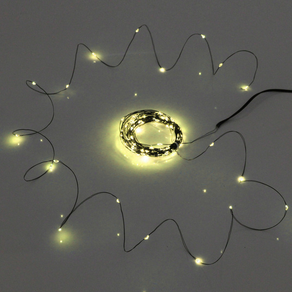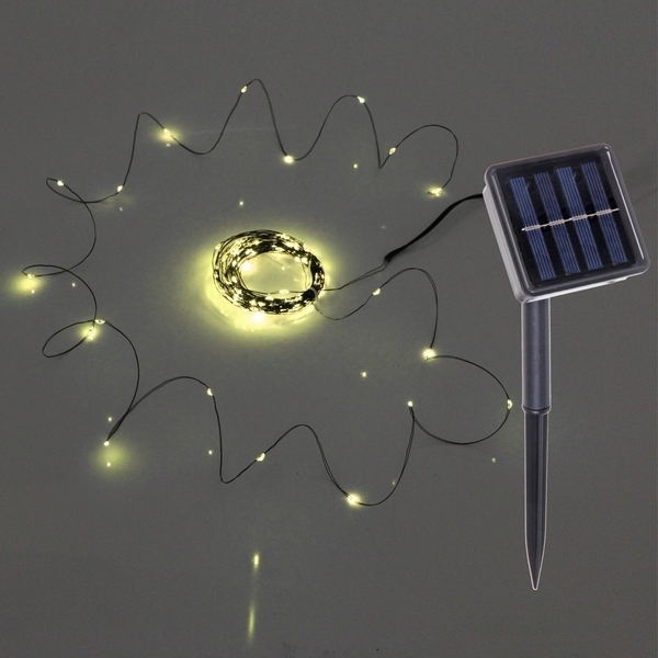 Гирлянда для улицы "Росинка" 10 м 100 ламп LED проволочн.пров. зелен., 8 реж.,IP-54, Теплый белый (солнечная батарея)