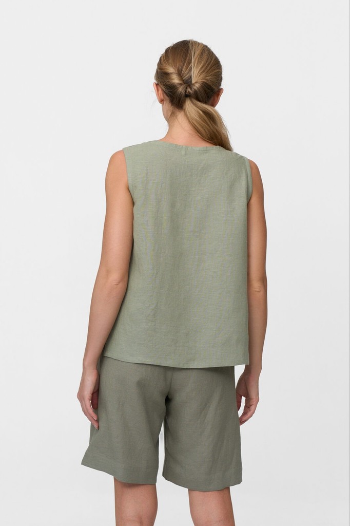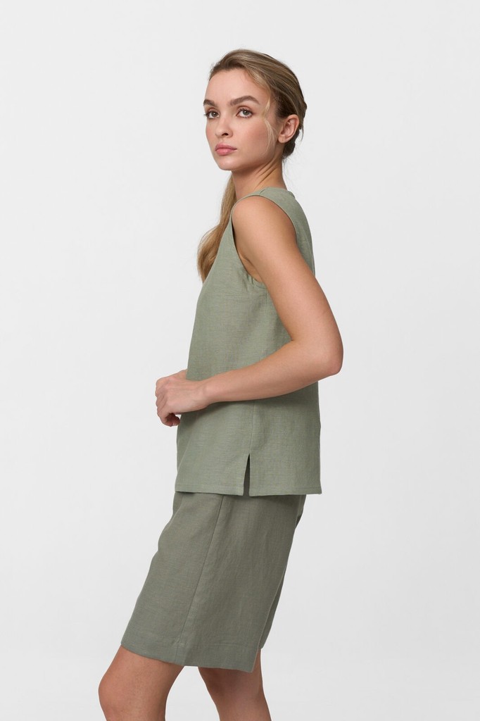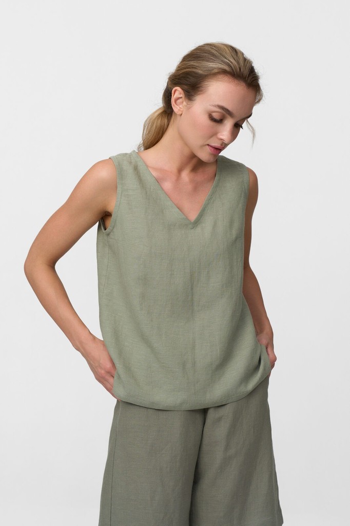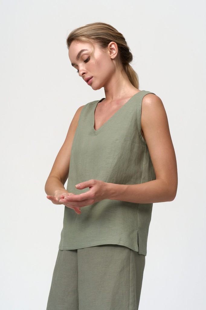 Цвет: осветленная олива Описание Состав: 50% лён, 50% вискоза. Плотность ткани 200 г/м. Майка женская прямая длиной до середины бедра с разрезами по бокам. Вырез горловины V-образной формы. Модель разработана на рост 164-170 см. Параметры модели: рост – 172 см, ОГ – 84 см, ОТ – 60 см, ОБ – 90 см. На модели 42 размер.