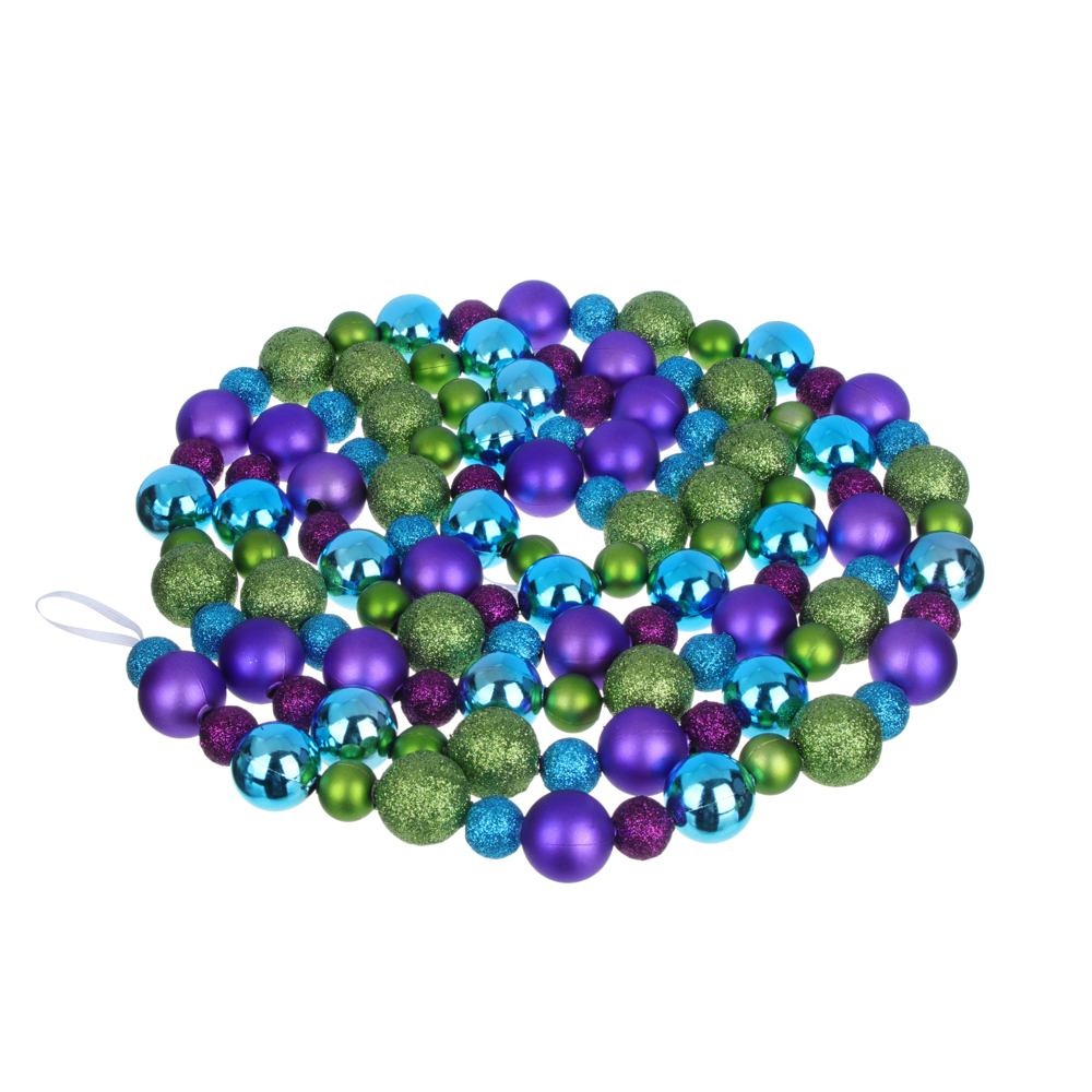 СНОУ БУМ Гирлянда декоративная из шаров, 3-цветная, пластик, 270см (фиолетовый, голубой, салатовый)