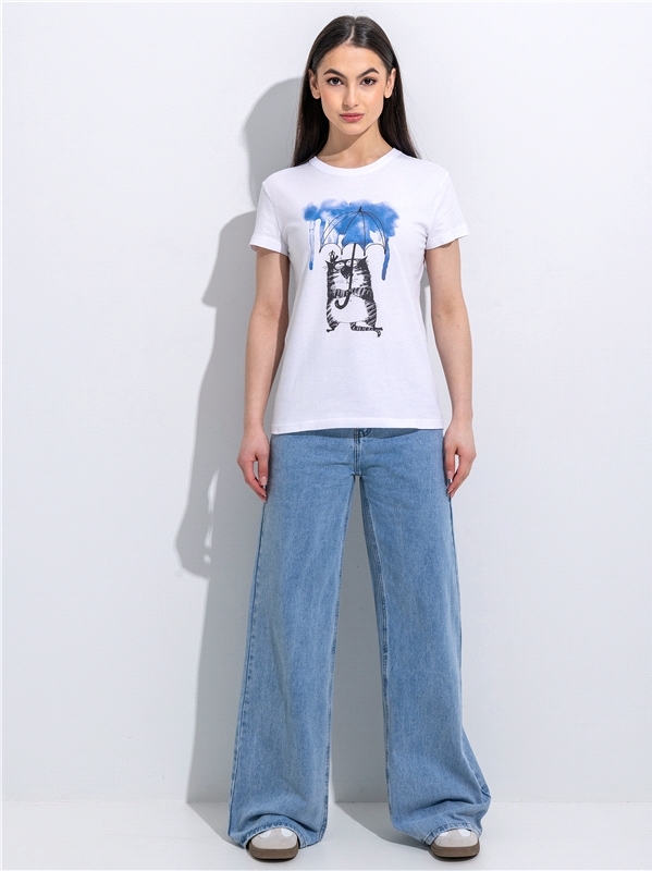 Цвет: белый / Кот под зонтом